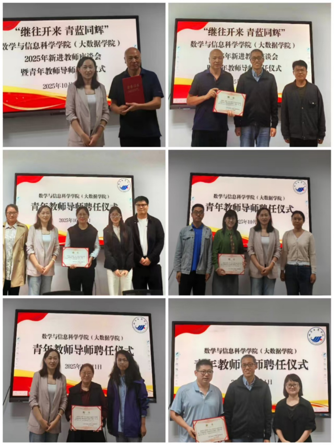 为加强学院师资队伍建设,助力新进教师快速成长,传承优良教风,10月11日下午,学院在3205会议室隆重举行“继往开来 青蓝同辉”2025年新进教师座谈会暨青年教师导师聘任仪式。学院领导班子成员、受聘导师及全体新进教师参会,会议由副院长张学清主持。
