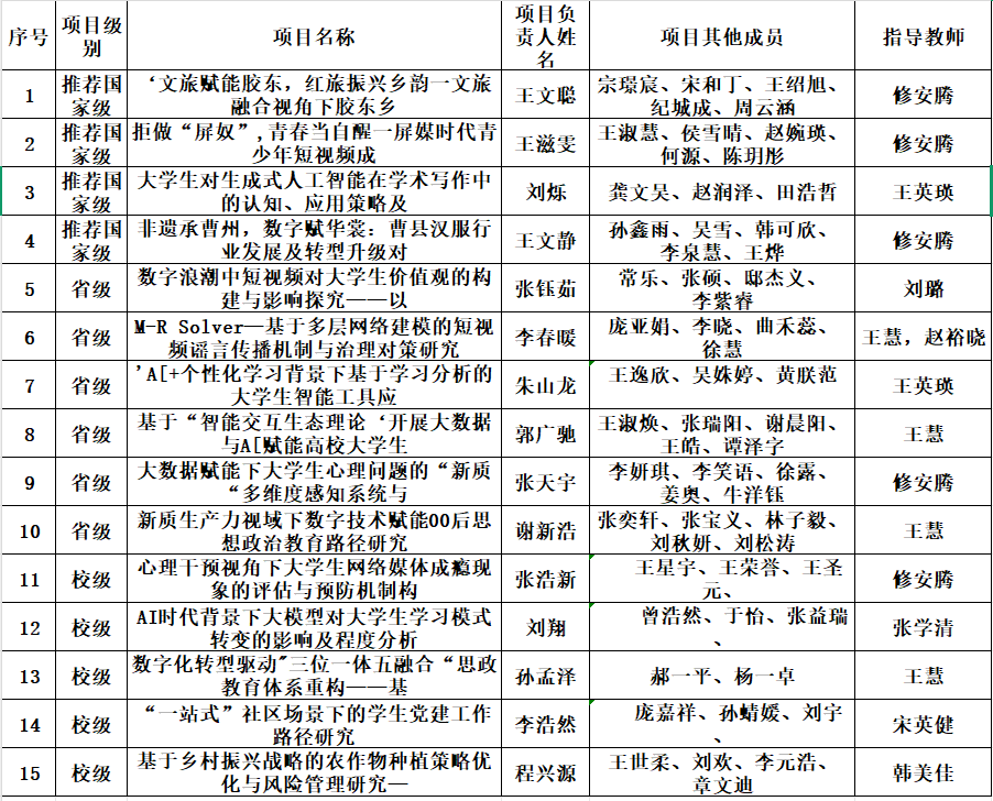 近日,2025年大学生创新创业训练计划结果公示,我院学子再创佳绩,获批推荐国家级立项创新创业训练项目4项、省级立项创新创业训练项目6项、校级创新创业训练项目5项,立项数稳步增长,充分彰显我院双创教育成效。